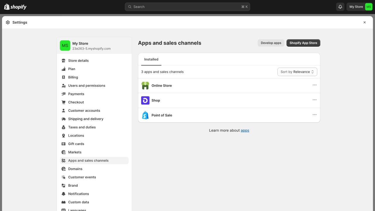 You can get to the Shopify App Store from your admin page by clicking on the Settings button. Simply click on the “Apps and sales channels” part. Alternatively, you can use the link to the Shopify App Store to find it.