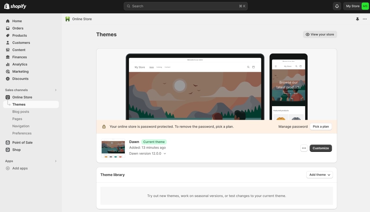 Begin your Shopify journey with a complimentary three-day trial on any plan. This grants you full access to your admin account, allowing you to explore all the store setup features, guides, and
