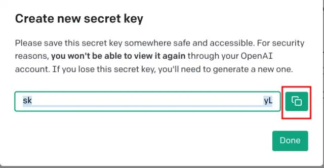 5. Get an API key from OpenAI’s site next. Create an account and select “Create a new secret key” if you haven’t already. Then, copy the API key.