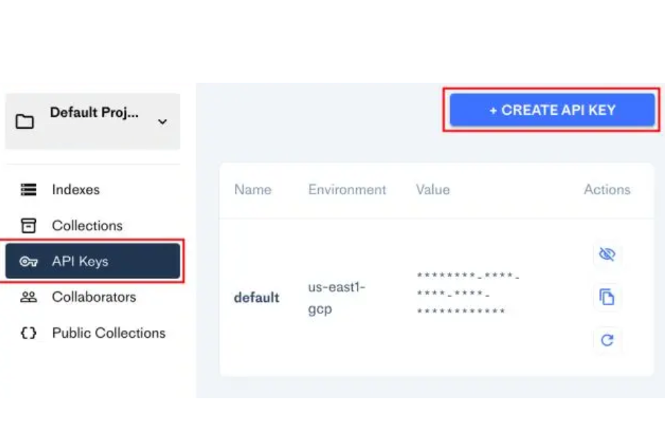 8. Select “API Keys” from the left navigation to generate a new API key, then “Create API Key” on the right.