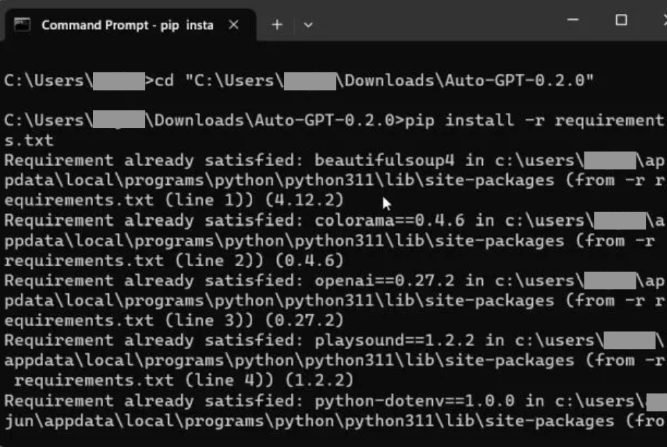 3. When you reach this point, execute the following command. Auto-GPT’s prerequisite libraries will be installed automatically.
