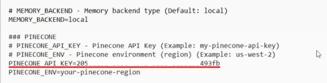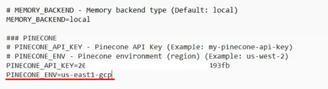 13. Copy this and paste it next to the PINECONE_ENV file.