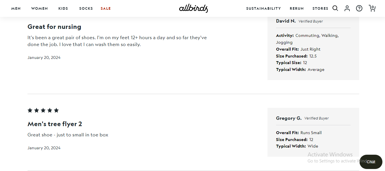 “allbirds” effectively utilizes user reviews to improve Shopify store SEO. Positive feedback on their fitness gear not only influences potential customers but also contributes to search engine rankings.