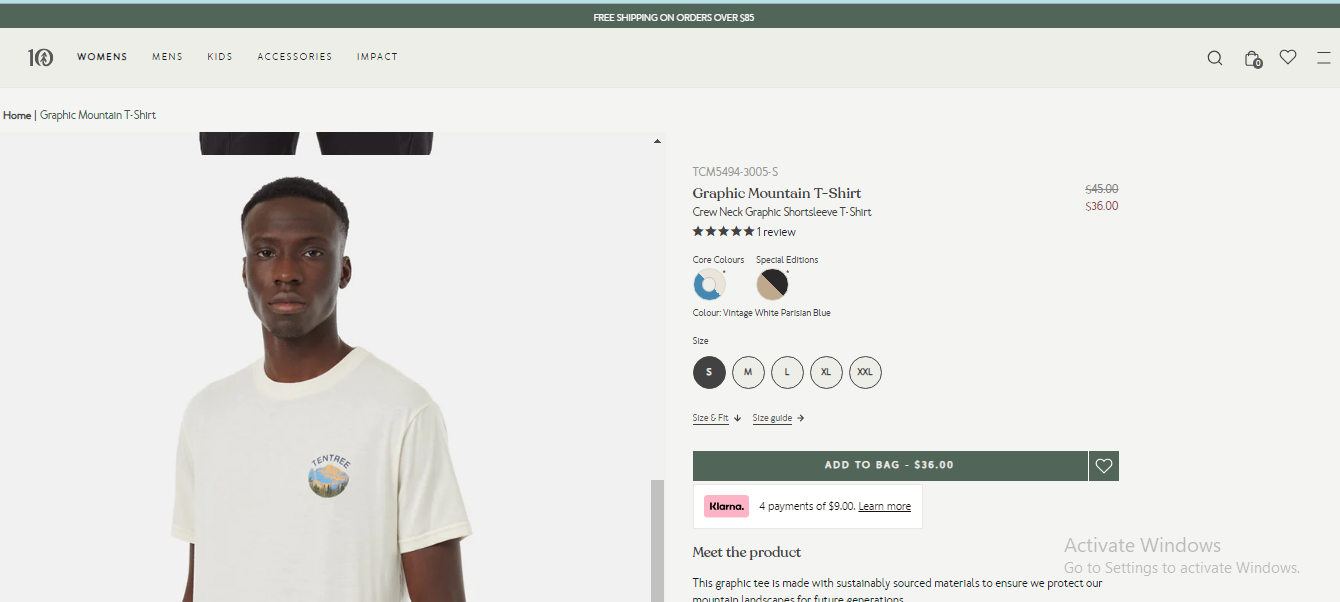If you’re looking for top-notch image optimization, “Tentree” is the perfect source of inspiration. Beyond high-quality visuals, they ensure their product images are SEO-friendly. They compress images to enhance page loading speed, use descriptive filenames (e.g., “White-Crew-Neck-Graphic-Shortsleeve-T-Shirt”), and strategically employ alt text.