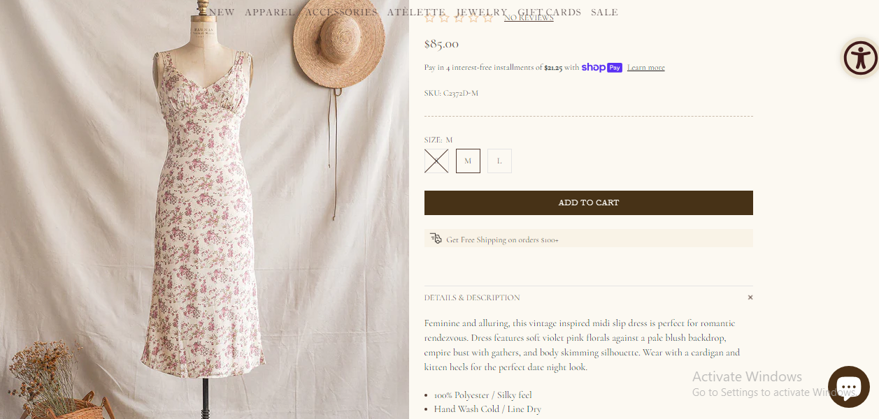 When creating product descriptions, take inspiration from “adored vintage,” a Shopify store based on vintage fashion that is skilled at persuasive writing. They Highlight the craftsmanship, the inspiration, and the unique journey each item undertakes. This not only captivates potential customers but also serves as rich, keyword-packed content that search engines love.