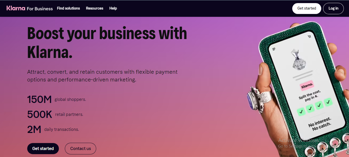 Klarna is a fantastic choice for enhancing your Shopify payment options. They work closely with merchants to ensure that transactions are made more affordable. It accomplishes this by dividing costs into installment loans that don’t charge any interest and are paid off over a short period of time.